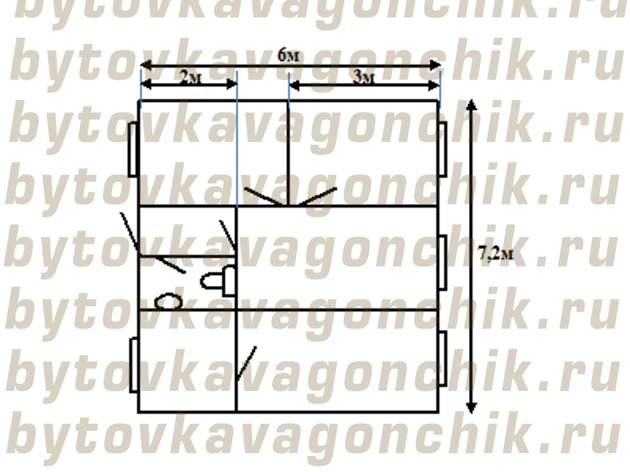 Блок-модуль 6,0*7,2*2,5м (из БК 6*2,4*2,5 – 3шт.) – 1шт.