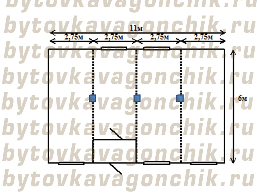 Блок-модуль «Помещение для приема пищи и обогрева», размер 11,0*6,0*2,8м состоит из: БК 6,0*2,75*2,8 – 4шт.